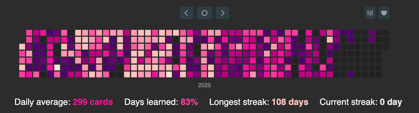 In winter, my fingers would get cold and I’d struggle to get the motivation to review cards (see the late middle of the year).